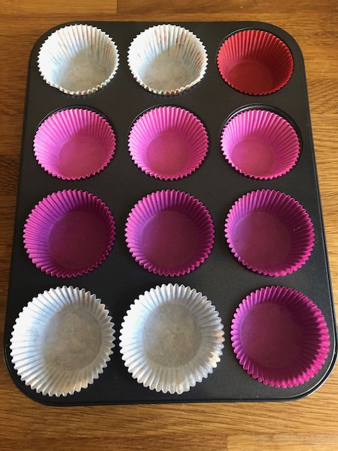 Verwarm de oven voor op 180° C. Vul een muffin tray met muffin vormpjes.
