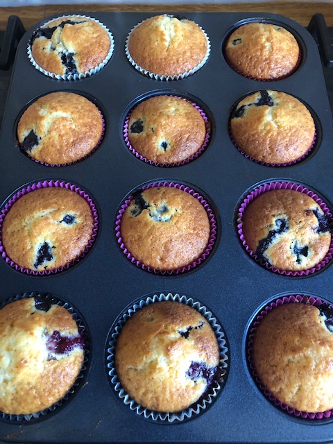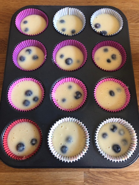 Zet de muffintray in het midden van de oven en bak deze in ongeveer 25 minuten gaar. Draai de muffin tray na ongeveer 18 minuten om en bak dan verder.