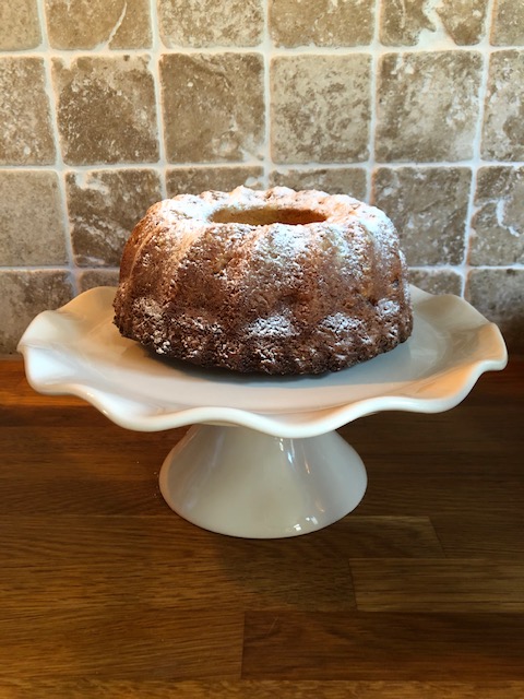 Door de bloem kan de bovenkant van de cake er wat flets uitzien. Wees gerust. De poedersuiker maakt dat helemaal goed.