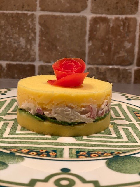 De causa versie die ik leerde maken was de variant met tonijn. Mariëla vertelde dat dit ook kan met kip bijvoorbeeld en zo ging ik aan de slag.