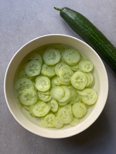 Dit bijgerecht is het recept van mijn moeder. Als wij mie, nasi of een ander Oosters geïnspireerd gerecht aten, maakte zij altijd een schaal met zoetzure komkommers. Zo lekker en zo heerlijk verfrissend.